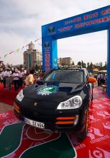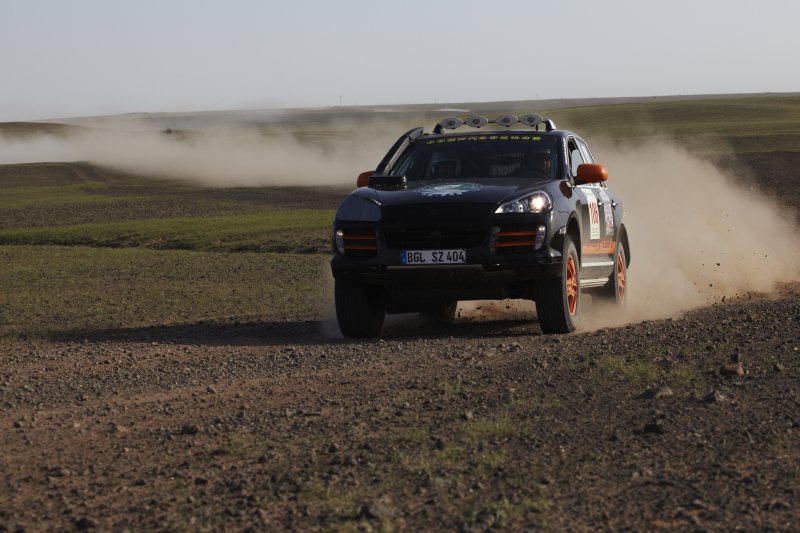 Doch vor dem Start hatte das Team Rebel-Schalber eine ganz eigene Rallye zu bestreiten: „Die Einladung der mongolischen Auto- und Motorsportföderation kam erst drei Wochen vor dem Beginn der Rallye - also viel zu kurzfristig, um unser Auto nach China bringen zu lassen", so Schalber. Also wurde beschlossen, den Cayenne selbst vom Allgäu ins Reich der Mitte zu fahren - an Bord eine Minimalausstattung aus Zelt, Schlafsack, Ersatzreifen und dem nötigsten Werkzeug. 9.800 Kilometer und zwölf Tage später stand der Stuttgarter Bolide an der Startlinie bereit. „Und das ohne das kleinste technische Problem", so Schalber. „Dabei hatte das Auto schon zwei komplette Transsyberia Rallyes hinter sich!"