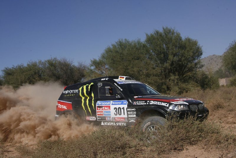 Dakar 2011 – Al Attiyah/Gottschalk bauen Vorsprung deutlich aus14.01.2011 Nach der 11. Etappe scheint die Entscheidung gefallen zu sein. Der gestern bereits vom Pech verfolgte Carlos Sainz (einmal festgefahren und einmal verfahren) hat auf dem Teilstück von Chilecito nach San Juan seinen Touareg ernsthaft beschädigt und dadurch über eine Stunde Zeit verloren. Nasser Al Attiyah ist nun unangefochtener Gesamtführender vor dem neuen Zweiten De Villiers. Matthias Kahle konnte nach seinem gestrigen Elektrikschaden zur 11. Etappe wieder starten und sogar seinen 10. Gesamtrang verteidigen. Carlos Sainz, bislang Zweiter der Gesamtwertung, führte die elfte Etappe der Marathon-Rallye 400 Kilometer lang an. Bei km 412 geschah es dann: Sainz hat sich in einem Schlagloch sein rechtes Vorderrad abgerissen. Fazit: eine Stunde Reparatur mit Unterstützung seines Teamgefährten Mark Miller. Sainz/Cruz fielen durch die Reparatur auf den dritten Gesamtrang, ihre Teamkollegen Miller/Pitchford auf die sechste Position zurück. Hinter Nasser Al-Attiyah erreichte der Franzose Stéphane Peterhansel im X-raid-BMW das Tagesziel mit 1.13 Minuten Rückstand als Zweiter. Die drittbeste Zeit ging an Vortagessieger Giniel de Villiers. Der „Dakar"-Champion von 2009 liegt in der Gesamtwertung der Rallye nun 51.49 Minuten hinter Al-Attiyah.