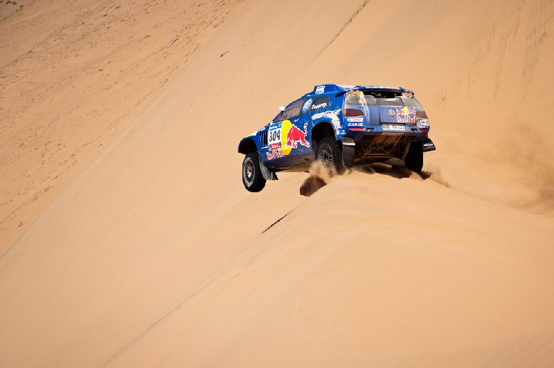 Stand nach der 8. Etappe, Antofagasta (RCH)–Copiapó (RCH); 508/776 km WP 08/Gesamt Team Fahrzeug Etappe 08 (Rang) Gesamtzeit 1. N. Al-Attiyah/T. Gottschalk (Q/D) VW Touareg 5:16.30 Std. (1.) 28:39.50 Std. 2. C. Sainz/L. Cruz (E/E) VW Touareg 5:23.06 Std. (2.) + 5.14 Min. 3. G. de Villiers/D. v. Zitzewitz (ZA/D) VW Touareg 5:33.52 Std. (3.) + 48.45 Min. 4. S. Peterhansel/J.-P. Cottret (F/F) BMW X3 6:30.11 Std. (6.) + 1:33.30 Std. 5. M. Miller/R. Pitchford (USA/ZA) VW Touareg 5:36.31 Std. (4.) + 2:32.23 Std. 6. K. Holowczyc/J.-M. Fortin (PL/B) BMW X3 7:27.52 Std. (11.) + 3:38.59 Std. 7. C. Lavieille/J.-M. Polato (F/F) Nissan Proto 6:40.06 Std. (9.) + 4:48.55 Std. 8. R. L.dos Santos/P. Fiuza (P/P) BMW X3 6:38.41 Std. (7.) + 4:51.29 Std. 9. G. Spinelli/Y. Haddad (BR/BR) Mitsub. Lancer 8:12.50 Std. (13.) + 5:33.48 Std. 10. M. Kahle/T. Schünemann (D/D) Buggy SMG 6:39.39 Std. (8.) + 7:06.57 Std.