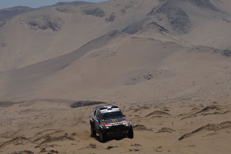 Dakar 2011 - 9. Etappe – Al-Attiyah bleibt in Führung, doch Sainz holt auf / Seite 2Das HS RallyeTeam hat den zehnten Platz in der Gesamtwertung fest bezogen: 90 Minuten Rückstand auf den Vordermann, mehr als zwei Stunden Vorsprung auf den ersten Verfolger. „Position halten“, lautete daher die Taktik von Matthias Kahle und Thomas Schünemann auf der neunten Etappe der Rallye Dakar. Die neunte Wertungsprüfung wurde von ursprünglich 235 auf 207 Kilometer Länge verkürzt. Sie bot dennoch die „Dakar“-typische Abwechslung im Terrain: Fester Sand und Dünenpassagen mit Kamelgras-Bewuchs zu Beginn, steinige Schotter-Passagen mit der Kreuzung ausgetrockneter Flussbetten im Mittelsektor und erneut sandige Dünnenquerungen zum Finale bildeten den Charakter dieser Wertungsprüfung. Viele Schläge schüttelten die Fahrer durch, die unisono die physischen Anstrengungen hervorhoben. O-Ton Timo Gottschalk: „Heute tut mir wirklich alles weh.“