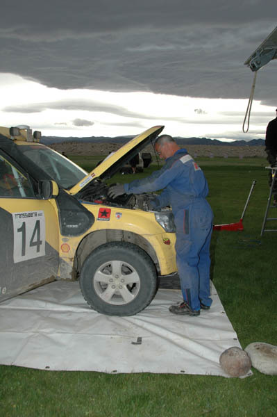 Transsyberia Rallye 2007 - Viele Hunde sind des Hasen Tod - Seite 3Dieses Problem trifft selbst Weltklassefahrer wie Armin Schwarz, der auf der nur gut 100 Kilometer langen 9. Etappe von Ölgii nach Mankhan drei Platten fuhr und so die drucklosen Pneus immer wieder durchtauschte, um schließlich doch noch auf der Felge das Etappenziel zu erreichen. Die Führung im Gesamtklassement war damit für ihn und seinen Beifahrer Oliver Hilger verloren, am Ende des Tages stand der siebente Platz für die beiden auf der Ergebnisliste. Über solcherlei Reifenprobleme kann das Suzuki-Werksteam nur staunen, das beide Fahrzeuge relativ problemlos ins Etappenziel gebracht hat. "Scheibenwaschen und alles sauber machen, habe ich meinen Mechanikern gesagt," flaxt Katja Poensgen, die ehemalige Motorrad-GP-Fahrerin, die nun den Suzuki Grand Vitara des einzigen Damenteams im Wettbewerb steuert. Und mit einem Seitenblick zum gebeutelten ehemaligen Rallye-Europameister Armin Schwarz: "Wir fahren halt einen Suzuki…"