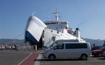 Volkswagen T5 Caravelle mit langem Radstand wartet auf die Fähre auf der Insel Elba
