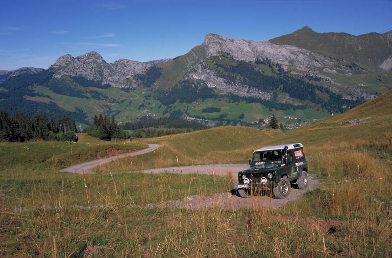 Gleich südlich der Schweizer Grenze lockt uns die Commune du Grand Bornand mit ihrer phantastischen Hochgebirgswelt. Die Ortschaft selbst ist schon in tausend Meter Höhe gelegen, eingebettet zwischen schroffen Bergriesen, die leicht zweieinhalb Mal so hoch sind. Unser Ziel ist der Col de Chatillon, ein nur 1680 Meter hoher Paß im Osten der Gemeinde über den eine „Piste Jeepable“ führen soll - so verspricht es zumindest eine Karte des Tourismus-Büros.