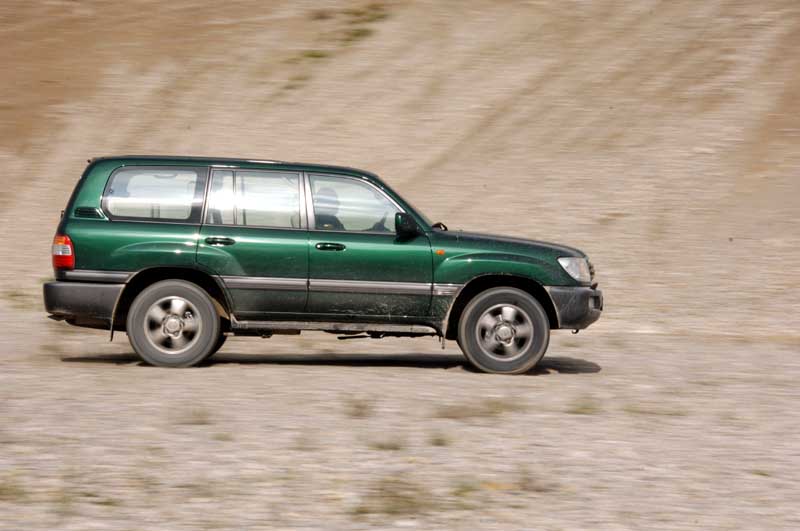 Im Clubsessel durchs Gelände - Toyota LandCruiser J100 4.2 TD Executive - Seite 5Braucht man diese nicht – und das ist sicherlich der Regelfall – ruhen sie nach einigen Handgriffen seitlich hochgeklappt an der Bordwand. Mit etwas Kraft- und Logistikaufwand lassen sie sich auch komplett ausbauen... Damit eröffnet sich ein langer, großzügiger und ebener Laderaum: Knapp 1,60 m von der Wand der nach unten öffnenden Heckklappe (das Fenster schwingt nach oben) bis zur vorgeklappten Fondbank.. Das Ärgernis der zweigeteilten Heckklappe: Von dort ist Transportgut, das nach einer Bremsung in den tiefen Laderaum gerutscht ist, nicht ohne Verrenkungen zu erreichen. Auch wenn die Ladekante mit 76 cm in der untersten Fahrwerksstufe schon mal angenehm niedrig für einen großen Geländewagen ist. Man muss dann eben über die Fondtüren ran (hoffentlich nicht in einer engen Parklücke!).