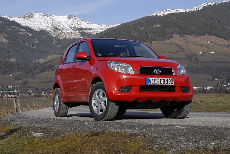 Kompaktes SUV für wenig Geld - Daihatsu Terios31.01.2007 Gegenüber seinem Vorgänger ist die zweite Generation des Terios deutlich größer geworden und damit der Klasse der Offroad- Winzlinge entwachsen. Was geblieben ist, sind die für ein Crossover-Modell guten Geländeeigenschaften und der günstige Preis. Ab 18.470 Euro ist der Daihatsu Terios zu haben – und das schon relativ gut ausgestattet, mit vier Airbags, Radio-CD sowie einer elektronischen Stabilitäts- und Traktionskontrolle. Bei der nächst höheren Version „Top" ist dann bereits alles an Bord, was man sich für den täglichen Einsatz wünscht: Von der Klimaanlage über Kopfairbags bis hin zu den Alufelgen – und das für immer noch moderate 21.340 Euro. Mit einer Länge von gut vier und einer Breite von knapp 1,7 Metern übertrifft die zweite Generation des Terios in den Abmessungen ihren Vorgänger deutlich und bietet im Innenraum spürbar mehr Platz. Hatte man beim alten stets den Eindruck, in einem automobilen Winzling zu sitzen, der speziell in der Innenraum- Breite eine Nummer zu knapp geschnitten war, hat sich das Raum- und Komfortgefühl beim neuen, im letzten Jahr präsentierten Terios grundlegend geändert.