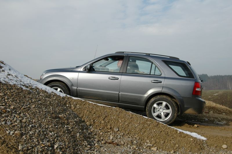 Auf die komfortable Seite schlägt sich die Fahrwerksabstimmung des Sorento. Trotz Starrachse hinten – die Vorderräder sind einzeln an Dreiecks-Querlenkern aufgehängt – hält der Kia auch grobe Straßenunebenheiten erfolgreich von seinen Passagieren fern. Im Gegenzug ist seine Seitenneigung in schnellen Kurven relativ ausgeprägt und auf langen Bodenunebenheiten gerät die Karosserie schnell mal ins Wanken. Doch einer allzu forschen Fahrweise steht ohnehin die leichtgängige Lenkung entgegen, die nur wenig Feedback von der Straße gibt.