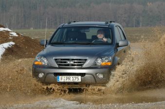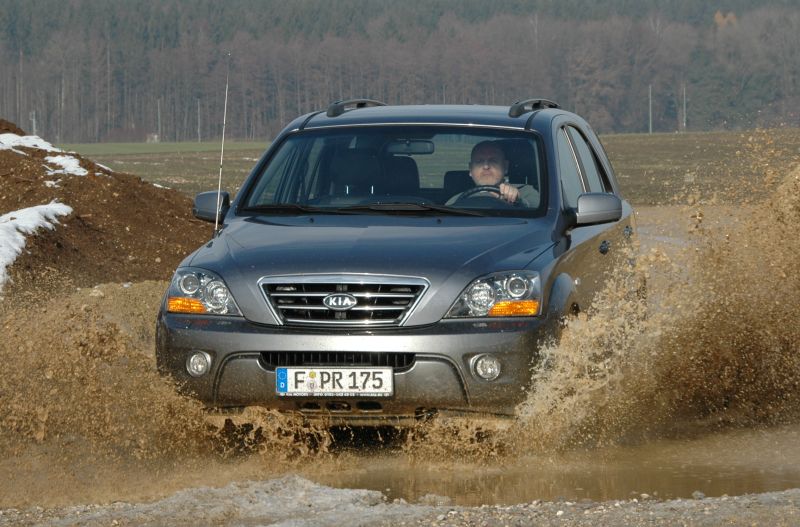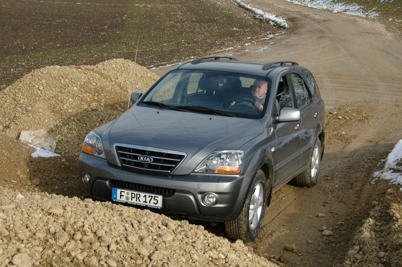 Neben dem komfortablen Cruisen beherrscht der Sorento aber auch die Disziplin „Geländefahren“. Unter seiner modern und SUV-mäßig gestylten Karosserie verbirgt sich nämlich astreine Offroad-Technik. Eine Mehrscheiben-Ölbadkupplung im Verteilergetriebe leitet die Motorkraft permanent sowie bedarfsgerecht an alle vier Räder und über einen Drehschalter am Armaturenbrett kann die Geländeuntersetzung aktiviert werden. Diese fällt mit einem Überstzungsverhältnis von 2,48:1 auch noch vernünftig kurz aus; mit ihrer Aktivierung wird gleichzeitig ein starrer Kraftschluss zwischen den Achsen hergestellt. So meistert der Sorento steilste Passagen und kriecht mit niedriger Geschwindigkeit durch schweres Geläuf. Ein massiver Leiterrahmen sorgt für Verwindungssteifigkeit, das ESP lässt sich abschalten und das Fahrwerk mit seiner hinteren Starrachse hält die Räder auch bei verworfenem Terrain noch lange auf dem Boden.
