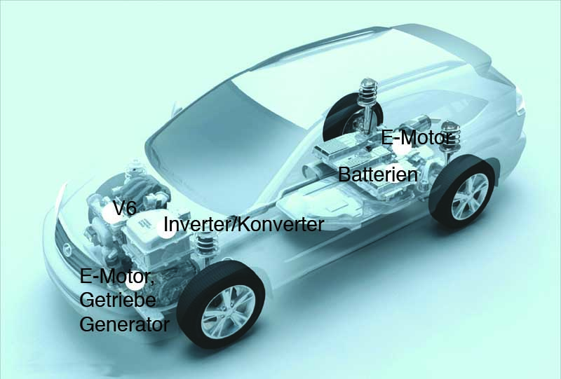 Im Zuge der Diskussion um die Verbrauchs- und CO2-Werte von Allrad-SUV hat derzeit lediglich Toyota mit einem Modell der edlen Tochtermarke Lexus einen Trumpf in der Hand: Den RX 400h. Denn das kleine "h" steht für ein großes Hybrid-System mit je einem Elektromotor an Vorder- und Hinterachse, die den 3,3 Liter V6 bei akutem Leistungsbedarf mit reichlich Drehmoment unterstützen und seinen Benzindurst mäßigen sollen. Im Stadtverkehr oder bei Schritttempo wird der Ottomotor sogar abgeschaltet - dann surrt der große Lexus stumm, nur getrieben von einem bzw. zwei E-Motoren, vor sich hin.