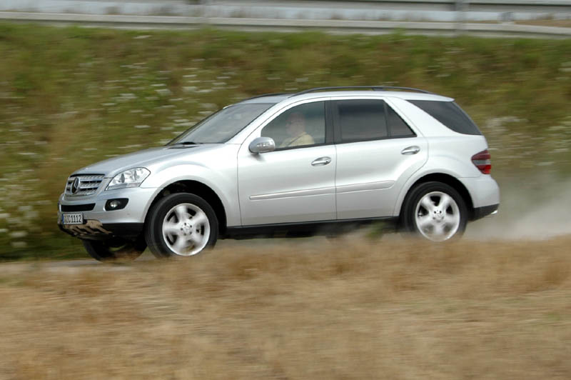 Mercedes ML 420 CDI - Geburtstagskind und Bestseller - Seite 4So gerüstet, ist der ML 420 CDI ein Geländegänger erster Güte: Voll nach oben gefahren schwebt der Auspuff im Heckbereich 31 cm über dem Boden, zwischen den Achsen herrschen 28 cm Bauchfreiheit und der Vorderwagen ist als tiefster Punkt immer noch 25 cm über Grund. Gleichzeitig schützen massive Platten den Fahrzeugboden vor Grundberührung - sauber gemacht! Weniger schön ist dagegen der für den Geländeeinsatz viel zu kleine Rückspiegel im aerodynamischen Roadster-Format, und auch an die Lenkradbedienung für die Automatik muss man sich erst gewöhnen. Doch selbst dann ist sie im Offroad-Betrieb nicht der Weißheit letzter Schluss: Bei den hier oft starken Lenkmanövern findet man einen klassischen Bedienhebel auf der Mittelkonsole einfach zielsicherer als die Lenkrad-Konstruktion der Mercedes-Automatik - wichtig, wenn man die Übersetzungsstufen manuell wechseln möchte.