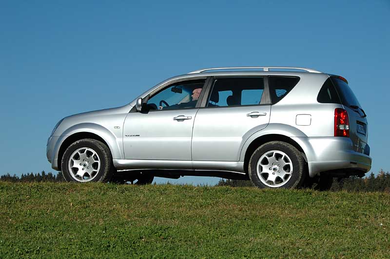 Kerniger Softie für Sieben - SsangYong Rexton 270 Xdi s Automatik04.12.2006 Von außen wirkt der im Frühsommer des Jahres überarbeitete Rexton wie ein weichgespültes Luxus-SUV. Innen stellt er Platz für bis zu sieben Passagiere in gediegenem Ambiente bereit. Doch unter dem Blech ist er ein rustikaler Geländewagen vom alten Schlag. Nun ja, von vorne wirkt die neueste Auflage des SsangYong Rexton ein wenig wie eine weichgespülte M-Klasse aus Stuttgart. Und die Koreaner kokettieren sogar ganz gerne mit dieser wohl kaum zufälligen Ähnlichkeit zum Produktdesign des ehemaligen SsangYong Miteigentümers Mercedes: „Das edle Kühlergesicht spielt dabei (selbst-) bewusst mit deutschen Wahrnehmungs- gewohnheiten", betont der Importeur.