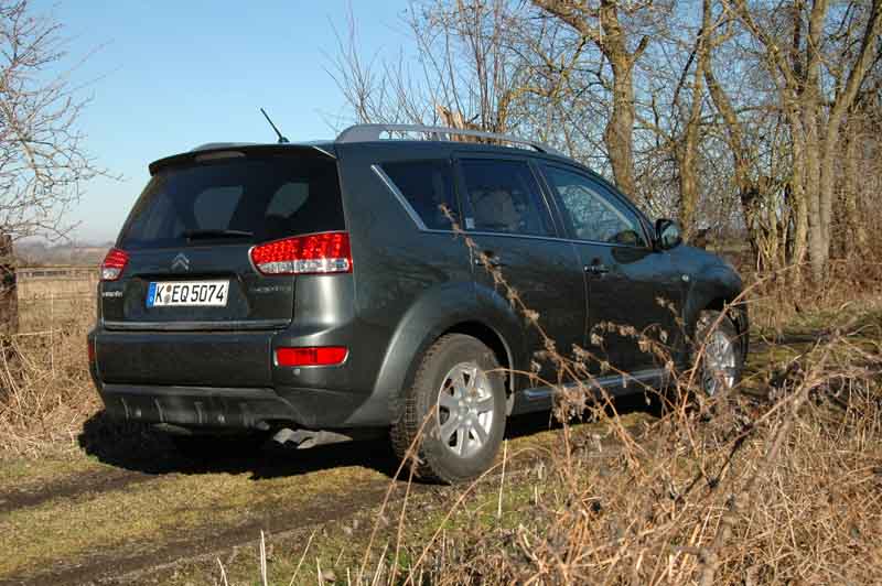 Test Citroën C-Crosser HDi 155 FAP – Monsieur multiple Comfortable22.02.2008 Nicht verwirren lassen: Dieses SUV trägt einen Doppelwinkel an der Frontmaske, ist also offensichtlich ein Citroën. Dahinter nagelt ein 2,2-Liter Turbodiesel aus dem Konzernduett mit Peugeot. Karosserie und Chassis indes stammen von Mitsubishi. In deren Werk in Japan läuft dieses SUV dann auch vom Band: Trägt er die drei Diamanten als Markenlogo heißt er „Outlander“, mit einem Löwe vorne drauf hört er auf den Namen „4007“, und mit dem Doppelwinkel nennt man ihn „C-Crosser“. In jedem Fall ist dieser Siebensitzer mit HDi-Triebwerk ein multieinsatzfreudiges Automobil der komfortablen Art. Aller guten Dinge sind bekanntlich drei. Gut, heißt also in diesem Falle: Tun sich drei Automobilhersteller zusammen, um gemeinsam ein neues Modell auf die vier – hier permanent angetriebenen – Räder zu stellen, dann spart das Entwicklungskosten. Und maximiert damit den Erlös. Vor allem der französische PSA-Konzern, die Bruderschaft aus Peugeot und Citroën, hat solcherlei Produktions-Triumvirate vielfältig praktiziert. Überwiegend mit dem italienischen Fiat-Konzern. Und ist damit gut gefahren: Entwicklungs-, vertriebs- sowie verkaufstechnisch. Von der jungen Kooperation mit Mitsubishi versprechen sich Peugeot und Citroen eine ähnliche Erfolgskurve. Eine traktionsstarke, dank SUV mit Allradtechnik. Denn die gehörten in den vergangenen Jahren eher zur stiefmütterlich behandelten Sparte des PSA-Konzerns. Dabei haben sowohl Peugeot als auch Citroën hier eine durchaus interessante Historie vorzuweisen: Schlägt man die Geschichtsbücher der Marke mit dem Doppelwinkel auf, stößt man unter anderem auf die legendären „Croisiere“-Expeditionen durch Afrika und Asien der Zwanziger- bzw. Dreißigerjahre, die „Sahara-Ente“ mit Front- und Heckmotor oder nutzorientierte Modelle wie den C15 mit nachgerüstetem Zuschalt-Allrad von Dangel. Und natürlich die vier jüngsten Rallye-Weltmeisterschaften des Sébastien Loeb auf dem Xsara- sowie dem C4-WRC.