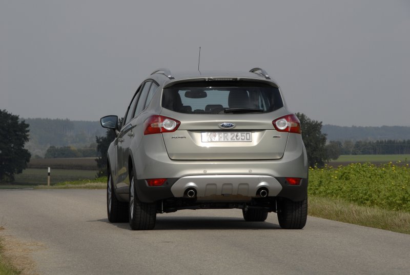 Ford Kuga 2.0 TDCi 4x4 – Fun Cruiser / Seite 6Im Heck bietet der Kuga einen 85 cm langen Laderaum, der durch Umklappen der geteilten Rückbank auf eineinhalb Meter anwächst und einen völlig ebenen Ladeboden hat. Praktisch auch: Der Zugang über die zweigeteilte Heckklappe, deren oberer Teil sich separat öffnen lässt. Für 28.5000 Euro ist der Kuga 2.0 TDCi 4x4 in der relativ komplett ausgestatteten „Trend“-Version zu haben, 2.000 zusätzliche Euro kostet das „Titanium“-Trim, das dann bereits Teil-Leder, sowie Regensensor, Fahrtlichtassistent, Tempomat und einen automatisch abblendenen Innenspiegel etc. umfasst. Für leistungshungrige SUV-Fans bringt Ford im Frühjahr 2009 den Kuga auch mit einem 2,5-Liter-Turbobenziner mit 200 PS und optionalem Automatikgetriebe.