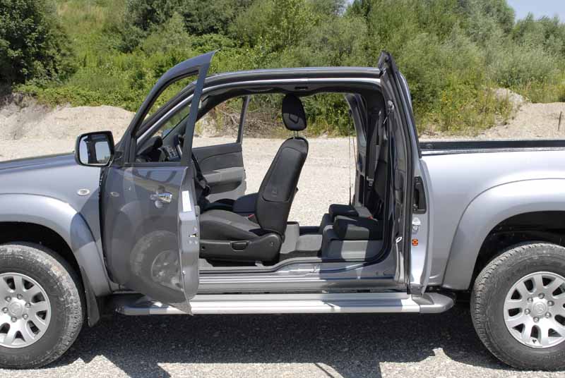 Von der bockigen Hinterhand des thailändischen Small-Size-Pickups war ja schon die Rede. Und leider können auch die für Nutzfahrzeug-Verhältnisse gut gepolsterten Vordersitze den mangelnden Federungskomfort nicht auffangen. Hinten sitzen?
