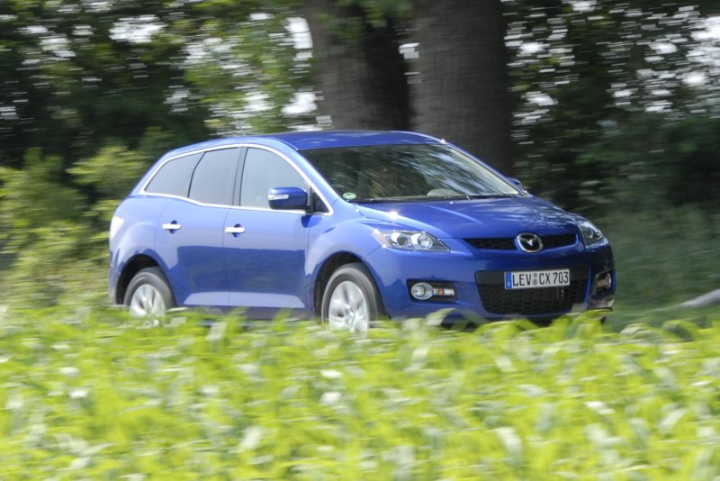 Mazda CX-7 – Fahrspaß pur09.07.2008 Der Mazda CX-7 ist das Spaßmobil unter den SUVs schlechthin: 260 PS, ein knackiges Sechsgang-Schaltgetriebe und ein sportlich abgestimmtes Fahrwerk – was will man mehr, solange man die Straße nicht oder nur selten verlässt? Als Mazda den CX-7 Ende letzten Jahres zu uns nach Europa brachte, hatten die Japaner ein klares Ziel vor Augen: Sie wollten mit dem neuen Modell die „Seele eines Sportwagens“ in die Klasse der SUV bringen und damit die Kategorie der „sportlichen Crossover-SUV“ neu erfinden. So stammt der Vierzylinder Turbobenziner unter der Haube des CX-7 direkt aus den sportlichen „Performance-Modellen“ Mazda6 MPS und Mazda3 MPS. Der nur 2,3 Liter große Direkteinspritzer entwickelt seine Höchstleistung von 191 kW (260 PS) bei 5.500 U/min und wuchtet ab 3.000 Touren ein Drehmoment von 380 Nm auf die Kurbelwelle. Ebenfalls aus der MPS-Familie stammt das Schaltgetriebe mit dem lang übersetzten sechsten Gang. Und um nicht auf halbem Wege stehen zu bleiben, widmete sich Mazda auf dem Nürburgring auch noch ausgiebig der Fahrwerksabstimmung seiner Europa-Version des CX-7.