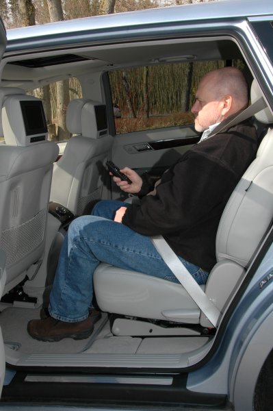 Mercedes R 320 CDI 4matic lang - „R“eise mit Klasse - Seite 414.08.2008 Gar nicht mal schlecht reist man im langen R selbst in der sonst oft so gescholtenen dritten Reihe. Schon der Einstieg gelingt ohne Verrenkungen, da sich die mittleren Sitze dafür einfach umklappen lassen. Dank verstellbarer Lehnen an den beiden Plätzen im Fond findet man hier dann schnell eine vernünftige Sitzposition. Um schließlich auch noch eine entspannte Beinfreiheit zu genießen, müssen nur die Mitreisenden in der zweiten Reihe ihr Sitzmöbel ein wenig nach vorne schieben. Platz genug dafür haben sie ja. Großzügig bemessen ist das Gepäckabteil, das selbst bei Nutzung aller Sitzplätze noch eine Länge von 54 Zentimetern aufweist. Wird die dritte Reihe weg geklappt, wächst das Ladeabteil auf 115 cm – oder nach VDA-Norm: Das Kofferraumvolumen der langen R-Klasse beträgt zwischen 684 und 2.436 Liter. Und wem das immer noch nicht reicht, kann zusätzlich 2,1 Tonnen an den Haken nehmen oder 100 Kilo aufs Dach packen.
