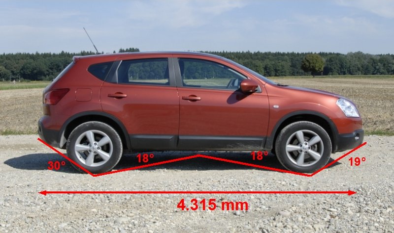 Große Differenz zwischen vorderem und hinterem Böschungswinkel.