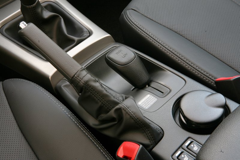 Ganz anders das Allradsystem beim Schalter: Hier versorgt ein Zentraldifferenzial im Normalfall beide Achsen mit je der Hälfte der Motorkraft. Verlieren die Räder vorne oder hinten die Traktion, tritt eine Viscokupplung in Aktion und unterbindet den Längsausgleich zwischen den Achsen. Darüber hinaus hat der Fahrer die Möglichkeit, über einen kleinen Zughebel das synchronisierte(!) Reduktionsgetriebe zu aktivieren. Das fällt mit seinem Übersetzungsverhältnis von 1,45 : 1 zwar nicht Geländewagen-mäßig kurz aus, lässt den Forester im Offroad-Betrieb aber weiter klettern als viele andere Fahrzeuge dieser Klasse.