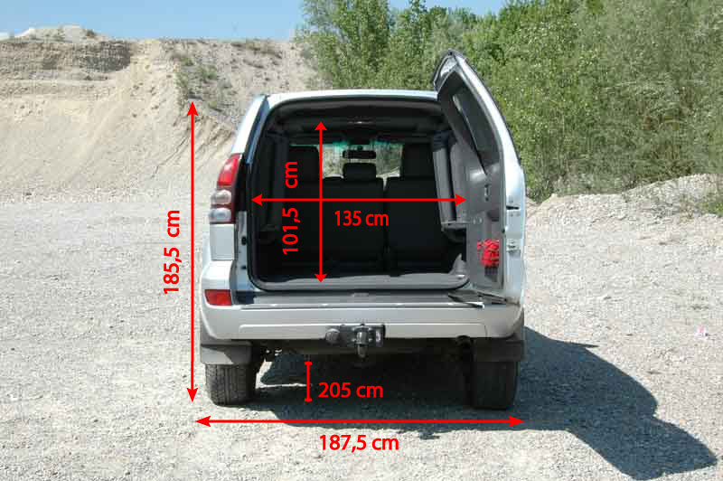 Leiterrahmen, Stahl-Karosserie, 2 Türen, seitlich angeschlagene Heckklappe, 5-8 Sitzplätze (ausstattungsabhängig) |