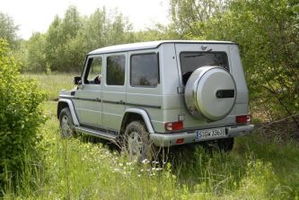 Längst vorbei sind also die Zeiten, in denen der Mercedes G auf die rechte Autobahnspur verbannt war. Ganz im Gegenteil: „Bergab mit Rückenwind“ kratzt die Nadel des Tachos schon mal an der 195-Stundenkilometer-Marke. Und wenn der knapp zwei Meter hohe G mit diesem Tempo im Rückspiegel auftaucht, dann macht er Eindruck und hat ein bemerkenswert hohes Überholprestige – das seinem Fahrer ein breites Grinsen ins Gesicht zaubert.