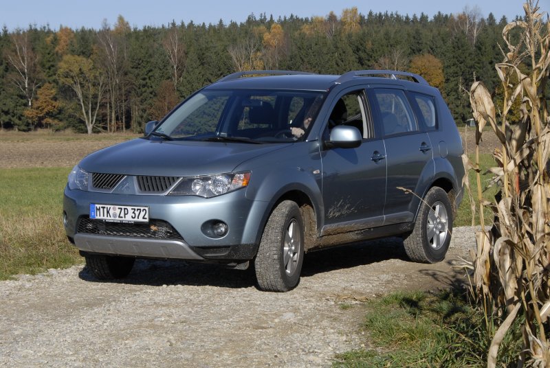 Darüber hinaus kann der Fahrer über den Allrad-Drehschalter auf der Mittelkonsole auf reinen Frontantrieb umschalten oder die Kraftverteilung in Richtung Hinterräder verlagern: In diesem „4WD-Lock“-Modus wird der Drehmoment-Anteil der Hinterachse um den Faktor 1,5 gegenüber der „4WD-Auto“-Stellung erhöht. Dies entspricht zwar in der Wirkung nicht ganz der einer manuellen Sperrung des Längsausgleiches – erlaubt es aber, dass die Stabilitätskontrolle auch bei „4WD-Lock“ ihre Arbeit unbeeinträchtigt verrichten kann. Und das macht Sinn, schließlich ist der Outlander kein Offroader, dagegen spricht seine geringe Bodenfreiheit von 18 cm genau so wie das Fehlen einer kurzen Geländeuntersetzung. Im Straßenbetrieb sorgt die frontlastige Verteilung der Antriebskraft für ein sicher-untersteuerndes Kurvenverhalten, ehe die serienmäßige Stabilitätskontrolle im Grenzbereich regelnd eingreift.