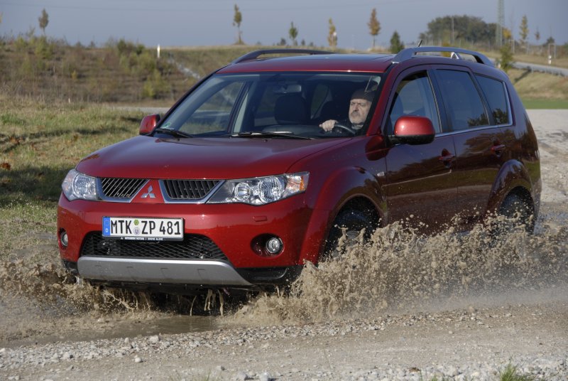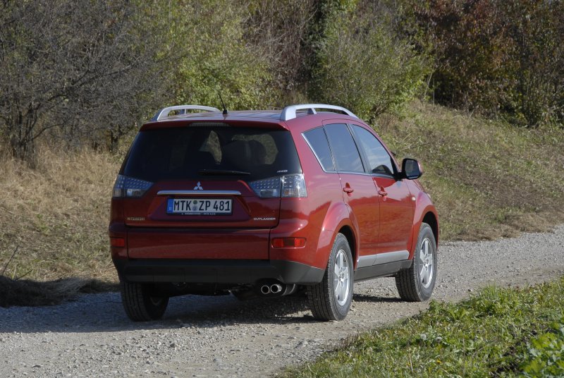 Mitsubishi Outlander 2.2 DI-D – Kraft und Raum / Seite 3Soll es noch ein bisschen mehr an Traktion sein, lässt sich besagter Knopf in die Gegenrichtung auf Lock drehen. Jetzt werden die Hinterräder stärker am Vortrieb beteiligt, ohne aber den Längsausgleich zwischen den Achsen gleich komplett zu sperren. Mit dem Effekt, dass der „Lock“-Modus auch auf festem Untergrund verwendet werden kann, ohne dass sich der Antriebsstrang verspannt oder die Stabilitätskontrolle deaktiviert werden müsste. Trotz seines Straßen-orientierten Allradantriebs und dem Verzicht auf Offroad-Assistenzsysteme wie Bergan- oder Bergabfahrhilfe kommt der Outlander im Gelände relativ weit – zumindest so lange der Untergrund nicht zu ruppig wird. Bergauf hilft ihm sein Drehmoment weiter, bergab ist die Motorbremswirkung erstaunlich stark ausgeprägt – obwohl der Outlander auf eine Geländereduktion verzichten muss. Schluss ist aber, sobald das Geläuf ein wenig ruppiger wird: Nur 18 Zentimeter Bodenfreiheit stehen dann einem Weiterkommen ebenso entgegen wie die geringen Böschungswinkel.