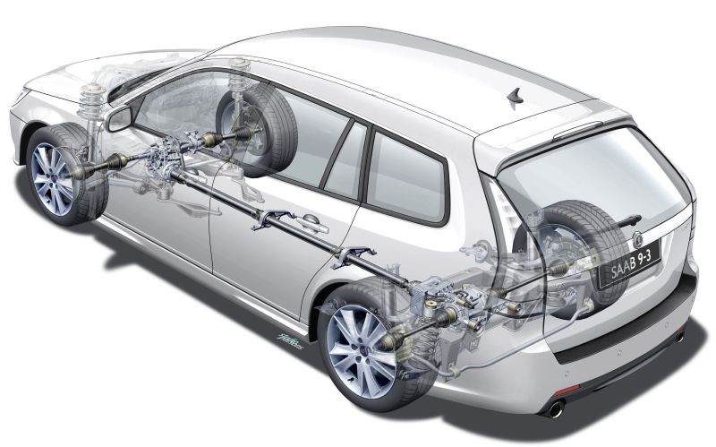 bietet mehr als nur ein Lifestyle-Ladeabteil – und macht einfach Spaß. Die Verteilung von vorne nach hinten übernimmt die elektronisch geregelte, nasse Lamellenkupplung. An der Hinterachse arbeitet ein elektronisches Sperrdifferenzial („eLSD“) mit eigenständiger Kontrolleinheit, die bis zu 80 Prozent des Drehmoments an das Rad mit der jeweils besseren Traktion leitet. Dieses Differenzial befindet sich quasi immer in „Hab Acht!”-Stellung, ist soweit vorkonditioniert, dass es nicht erst auf Schlupf warten muss um zu reagieren.