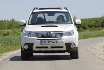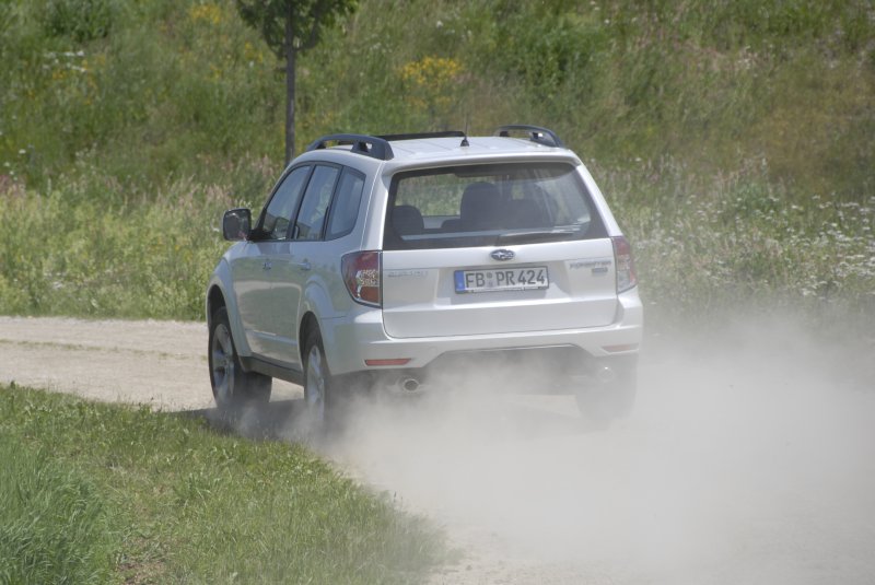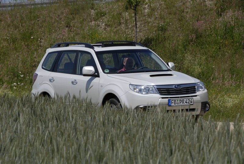 Der aufwändige Allradantrieb des Forester mit Zentraldifferenzial und paralleler Viskokupplung verhindert Traktionsprobleme nicht nur auf glatten Straßen wirkungsvoll, sondern lässt den Subaru auch im leichten Gelände gut voran kommen – wenngleich dem Diesel-Forester (ebenso wie den Automatikmodellen der Baureihe) die Geländeuntersetzung des Benzin betriebenen Schwestermodells fehlt. Ganz langsam fahren ist mit dem Forester 2.0D trotzdem möglich, da der Selbstzünder im ersten Gang sogar mit Leerlaufdrehzahl noch rollt und beim Tritt aufs rechte Pedal ohne zu murren Gas annimmt. Zu steil sollte das Gelände aber dennoch nicht werden, da ihm – ganz SUV-untypisch – eine Bergabfahrhilfe fehlt und der Berganfahr-Assistent eine Geländereduktion auch nicht ganz ersetzen kann.
