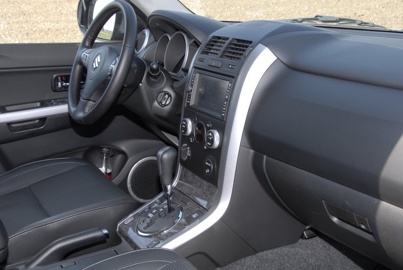 Suzuki Grand Vitara 3.2 – Starkes Jubiläumsmodell / Seite 3Einen etwas zwiespältigen Eindruck hinterlässt das mit dem V6 zwangsgekoppelte Fünf-Stufen-Automatikgetriebe ohne manuelle Schaltgasse. Im Normalfall erledigt es seine Aufgaben unauffällig. Die Gangwechsel erfolgen weich und ohne große Schaltrucke. Leistungsanforderungen des Fahrers erledigt der Automat mit der gebotenen Spontaneität. Nur die Gangwahl ist nicht immer nachvollziehbar. Einen Kickdown-Befehl bei Tacho 140 quittiert das Getriebe gelegentlich mit einem Herunterschalten in die vierte Übersetzungsstufe, ein andermal krallt sie sich den dritten Gang. Wer sich also beispielsweise beim Überholen darauf verlässt, dass das Getriebe automatisch für schellstmöglichen Geschwindigkeitszuwachs sorgt, erlebt so manche Schrecksekunde. Da macht es durchaus Sinn, in solchen Situationen vorsorglich selbst die Gangwahl zu übernehmen – nur den „Power“-Schalter für die Getriebesteuerung auf der Mittelkonsole zu aktivieren bringt nämlich auch nicht verlässlich den gewünschten Effekt. Gleichzeitig ist auch der stärkste Grand Vitara ein vollwertiger Offroader geblieben. Mit seinem manuell sperrbarem Zentraldifferenzial und einem Reduktionsgetriebe ist er mit klassischer Geländewagen-Technik bestückt. Zusätzlich hat Suzuki seinem Jubiläumsmodell noch einen Berganfahrassistenten sowie eine Bergabfahrhilfe spendiert. Ersterer verhindert ein Zurückrollen beim Losfahren am Berg, zweitere hält die Geschwindigkeit auf Knopfdruck im steilen Gefälle konstant, ohne weiteres Zutun des Fahrers. Der Grand Vitara rollt nun mit zehn Stundenkilometern bergab, bei eingelegter Untersetzung mit nur fünf km/h.