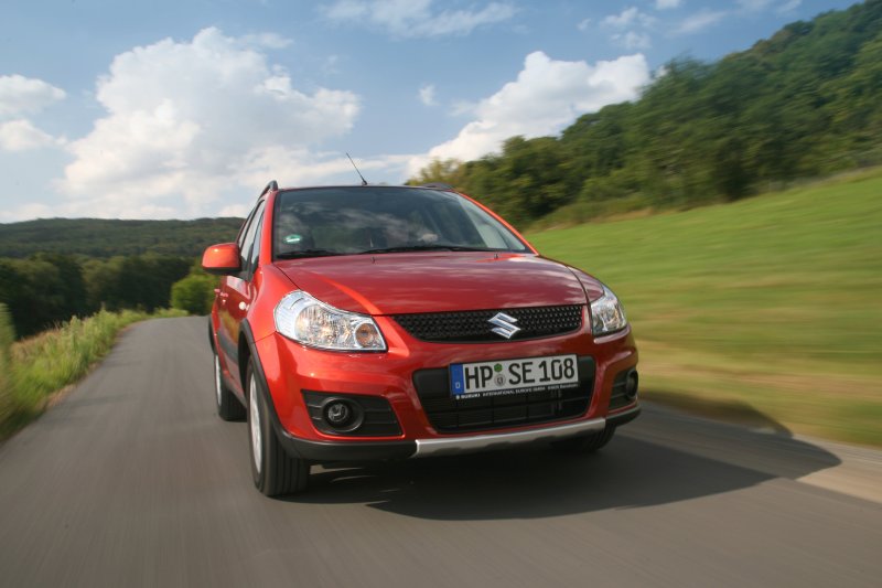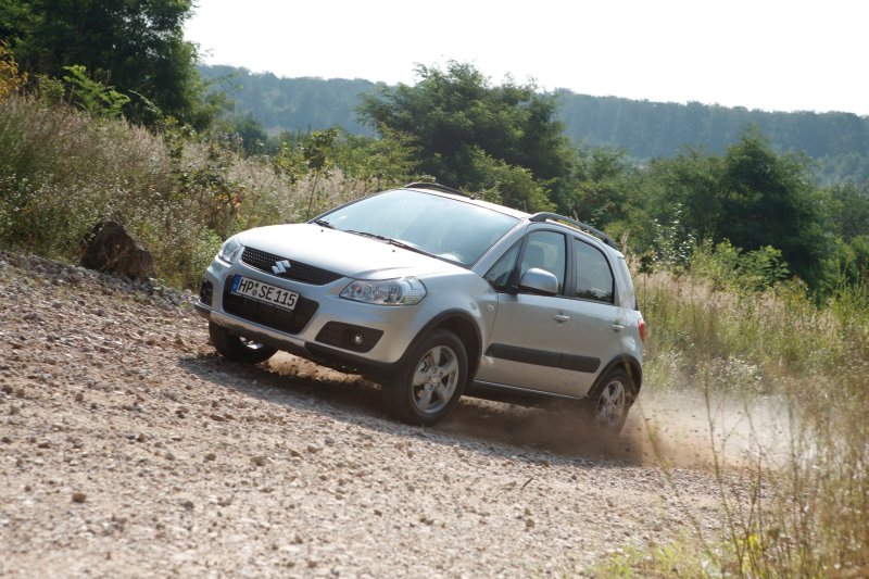 Suzuki SX4 i-AWD Fahrvorstellung – Mehr Power, weniger Verbrauch05.10.2009 Drei Jahre nach seiner Markteinführung hat Suzuki den SX4 einer Modellüberarbeitung unterzogen. Außen wurde das City-SUV nur dezent aufpoliert, innen moderat aufgefrischt – aber unter der Haube deutlich aufgepeppt. Man muss schon genau hinsehen, um die Unterschiede zwischen der ersten und der zweiten SX4-Generation zu erkennen. Eine neue Frontschürze und ein überarbeiteter Kühlergrill sowie ein neuer Unterfahrschutz, das war's im Wesentlichen. Doch wer sich die Arbeit macht und in die Knie geht um mal kurz auf den im Metallic-Look mächtig wirkenden Unterfahrschutz zu klopfen, stellt schnell fest, dass der immer noch aus Weichplastik ist. Macht aber nichts, schließlich hat Suzuki für Geländeausflüge deutlich geeignetere Modellreihen im Programm. Denn der SX4 ist im Prinzip nichts anderes als ein fünftüriger, nur 4,15 Meter langer Kompaktwagen, dem sein automatischer Allradantrieb und die 19 cm Bodenfreiheit ein Mindestmaß an Schlechtwegetauglichkeit garantieren. Darüber hinaus hat der Fahrer die Möglichkeit, die elektromagnetisch angesteuerte Lamellenkupplung per Knopfdruck manuell zu sperren und so für eine konstante 50 : 50 Kraftverteilung zwischen den Achsen zu sorgen.