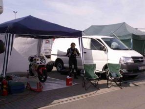 Alles verstaut und festgezurrt. Los geht's. Vor allem in Richtung Rennstrecke haben wir's eilig, der Terminplan ist eng gesteckt und wir möchten uns einen guten Platz im Fahrerlager sichern.