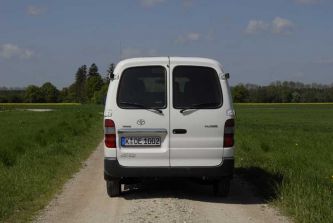 Der erste Gang ist mit 4,313:1 recht kurz übersetzt: Gut zum Anfahren an Steigungen, mit Hänger und/oder voller Beladung. Wie eben jetzt. Und im Bedarfsfall eben auch auf losem Untergrund, dank dem permanenten Allradantrieb via einer Visco-Kupplung am Zentraldifferenzial, die die Antriebskraft variabel von der Hinter- in Richtung Vorderachse verlagert. So kommt man problemlos runter von der nassen Wiese oder aus dem verschneiten Parkplatz. Und fühlt sich auch auf regennasser oder weiß überzuckerter Straße trotz fehlendem ESP tendenziell fahrsicher: Im Extremfall neigt das Heck nur kurz zu einem Ausbrucksversuch, bevor die Kraftverlagerung es wieder einfängt. Dass sich die simple Lösung mit der „Öldose“ (vulgo: Lamellen im Ölbad) beim Rangieren durch Verspannungen bemerkbar macht, kennen wir noch aus den Anfängen des permanenten Allradantriebs.