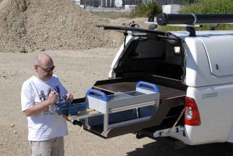 Wer bei der Auswahl und Anordnung logistisch ausgeklügelt vorgeht, lässt genügend Park-Platz für größeres Equipment wie – in unserem Fall – einen zweiten Rädersatz, Benzinkanister oder eine mittlere Ersatzteilkiste. In die kleinen Zwischenräume passen sogar noch ein paar Unterleg- und Abdeckplanen hinein. Und sollte der Stauraum im Hardtop doch mal nicht ausreichen, verträgt selbiges noch rund 45 Kilo Dachlast, die sich auf einem robusten aufgeschraubten Träger verzurren lassen. Für langes, sperriges, knick- und wetterempfindliches Equipment wie Messlatten, Kabelkanäle, Kunststoff- oder Metallstangen aller Art bieten sich Transportrohre wie jenes an, das bei unserem Testmodell auf dem Dachträger montiert war.