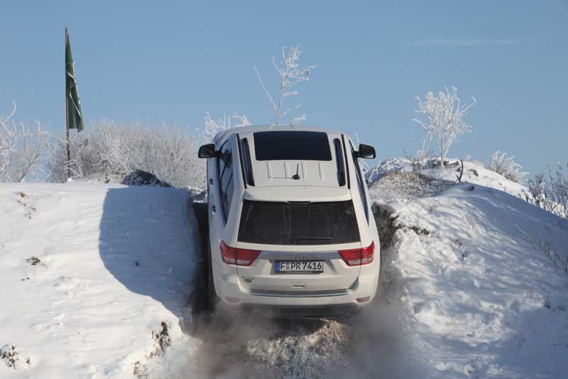 Jeep Grand Cherokee IV – Generationswechsel mit dem „Leuchtturmprojekt“07.12.2010 Ein neues Zeichen setzen soll er, der jüngste Jeep Grand Cherokee mit dem Typcode WK. Immerhin ist es die nunmehr vierte Generation des amerikanischen Luxus-Geländewagens. Die erste hatte vor fast 20 Jahren die Tradition dieser Baureihe (in der Erbfolge des SUV-Pioniers Grand Wagoneer) im US-Konzern begründet – ein leuchtendes Vorbild für die Allrad-Szene. Das soll, so der ausdrückliche Wunsch von Sergio Marchionne, in seiner Eigenschaft als Fiat-Konzern-Chef seit kurzem Boss der Jeep-Mutter Chrysler, jetzt auch der neue Grand Cherokee sein: ein „Leuchtturm-Projekt“, das seit dem letzten November-Wochenende als 3.6 V6 und 5.7 V8 in der umfassenden Ausstattung „Overland“ für 52.850,- und 62.450,- Euro beim Händler steht. Im Mai 2011 soll dann auch ein frisch entwickelter 3.0 V6 Diesel Einzug hinter dem charakteristischen Kühlergrill mit den traditionell sieben senkrechten Lüftungsschlitzen Einzug halten. Da steht er nun für eine erste Ausfahrt ins Gelände und auf der Straße bereit: Der Jeep Grand Cherokee der vierten Generation, dessen Eckdaten wir bereits in einer Vorab-Meldung referiert hatten. Von der reinen Äußerlichkeit ein alter Bekannter. Keine stilistischen Spielereien, sondern eine behutsame Pflege der traditionellen Stilakzente. Wir kennen und schätzen das ja: Trapezförmige Radhäuser, damit die serienmäßigen 265/50er-Reifen auf den 20-Zoll-Felgen ebenso ordentlich Bewegungsfreiheit haben wie die gleichbreiten 60er auf den 18-Zöllern. Erneut keine langen Überhänge vorne und hinten, zwecks pragmatischer Böschungswinkel. Auch das ein klares Designzeichen in puncto traditioneller Jeep-Geländetalente. Um deren weitere Steigerung sich nun einmal mehr die Techniker gekümmert haben: Die beiden bekannt bewährten Allradsysteme Quadra-Trac II und Quadra-Drive II – Sie wissen ja: permanent mit Verteilergetriebe und elektronisch geregelter Lamellenkupplung – werden nun in ihrer Traktionsarbeit von einem „Selec-Terrain“ genannten, elektronischen Straßen-/Geländeprogramm unterstützt. Dieses Traktionssystem offeriert dem Chauffeur fünf unterschiedliche Modi, die er mit einem Drehschalter auf der Mittelkonsole aktivieren kann: „Auto“ entlastet ihn von jeder Entscheidungsnot, da das System Antriebs- und Fahrwerksreaktionen in dieser Einstellung selbstständig dem aktuellen Untergrund und dessen Traktionsbedingungen anpasst. „Sport“ ist ein Fahrspaß fördernder Modus, rein für asphaltiertes Geläuf programmiert, in dem unter anderem die Schaltpunkte der 5-Stufen-Automatik auf „später“ (in Richtung roter Bereich also) verlegt werden und auch das ESP zugunsten der Fahrdynamik mit Verzögerung eingreift (die Kontroll-Lampe suggeriert via Dauerleuchten allerdings eine Abschaltung, was für Irritationen sorgt). In der Variante mit der „Quadra-Lift“-Luftfederung (die derzeit leider nur in der 5,7-l V8-Version zu haben ist), senkt sich die Karosse zudem um 15 Millimeter auf einen aerodynamischen Level, das Fahrwerk agiert entsprechend straffer. „Snow“ bietet sich in der aktuellen Jahreszeit an, wenn die Straßen- und Wege verschneit sind: Es optimiert hier die Traktion.