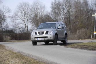 Im Ernstfall, bei Traktionsverlust an den Hinterrädern, erfolgt die Zuschaltung tatsächlich blitzschnell. Auf nasser Straße zuckt das Heck dann nur kurz und leicht beherrschbar aus, bevor sich die Fuhre wieder stabilisiert. Im Gelände zieht's den Pathfinder-Fahrer mehr oder wenige souverän aus dem Schlamassel. Dort hat er ja ebenfalls noch die Chance, per Drehschalter nicht nur die Lamellenkupplung für einen starren Durchtrieb zu sperren, sondern auch die Untersetzung elektrisch zu aktivieren. Im unwegsamen Geläuf punktet die klassische Leiterrahmen-Konstruktion mit Stabilität in der Verwindung sowie einer ordentlichen Bodenfreiheit von 23 Zentimetern und die Verschränkung liegt trotz einer Einzelradaufhängung bei tauglichen 200 Millimetern.