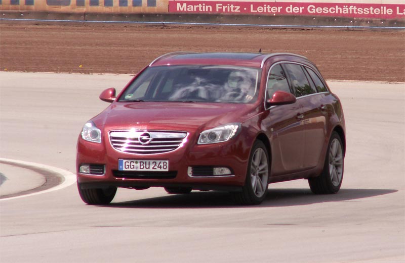 Opel Insignia Sports Tourer 2.8 V6 Turbo 4x4 – Der Komfortsportler27.09.2010 Geschmeidig, kraftvoll, komfortabel, sportlich und durstig: Opels Vorzeige Allrad-Kombi Sports Tourer 2.8 V6 bietet viele Facetten. Klar, die 4x4-Variante mit dem 160 PS starken 2.0 Turbodiesel, genannt CDTI, wäre vernünftiger. Weil vor allem weniger durstig. Aber das 260 PS starke Sechszylinder-Turbo-Aggregat macht halt eine deutliche Prise mehr Spaß… 120 km/h steht auf dem runden Verkehrszeichen mit weißem Untergrund und rotem Rahmen. Das Tempolimit gilt mal wieder für eine lange Strecke. Also Tempomat eingeschaltet und die Dauerschlaf-Geschwindigkeit eingeloggt. Gähn. Könnte ich den 260 per Turbo zwangsbeatmeten Vollblutpferden des Sechszylinders unter der Haube jetzt die Sporen geben, wäre ich mit einem Schlag wacher. Und hätte mehr Fahrspaß. Okay, ein teurer Spaß – und ein kurzer dazu: Ich würde dann also wie beim letzten Galopp wieder mit 390 Kilometern auf dem Tageszähler an der Zapfsäule stehen und Sprit im Wert von über 80 Euro in den 70-Liter-Tank fließen lassen. Und mich dann fragen, ob ein Verbrauch von 15,2 Litern auf 100 Kilometer heutzutage noch vertretbar ist. Dann also besser die legislativen Zügel ziehen und den Schnitt senken – Spritkonsum wie Tempo betreffend. Da schnurrt er also dahin, der geschmeidige Sechszylinder unter der hübschen Haube des Insignia Sports Tourer. Ruhig, einschläfernd… Ebenso sanft und einlullend agiert das Fahrwerk bei diesem Tempo. Und das adaptive Allradsystem ist nicht gefordert, momentan sind also nur die Vorderräder angetrieben.