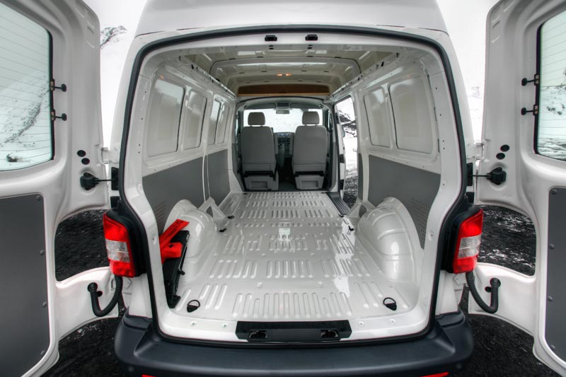 Serienausstattung: ABS, EBD, ESP, ASR, Fahrer- und Beifahrerairbag (Transporter); ABS, EBD, ESP, ASR, Berganfahr-Assistent, Fahrer- und Beifahrerairbag, Kopf- und Seitenairbags, ellektr. Außenspiegel, elektr. Fensterheber vorn, 3er-Sitzbank hinten, Zentralverriegelung mit Funkfernbedienung (Multivan)