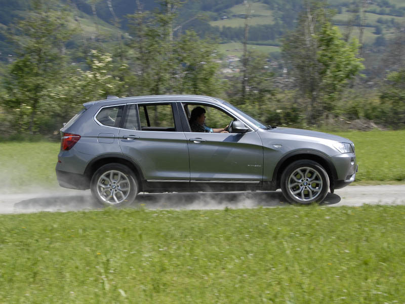 Nicht viel neues gibt es vom xDrive Allradantrieb zu berichten. Wie beim Vorgängermodell werden auch im neuen X3 vornehmlich die Hinterräder mit Antriebskraft versorgt, bei Bedarf beteiligt eine elektronisch angesteuerte Kupplung die Vorderachse mit maximal 50 Prozent am Vortrieb. Die mit der Fahrstabilitätsregelung DSC (Dynamische Stabilitäts Control) vernetzte Allrad-Steuerung wirkt im Straßenbetrieb einem Über- oder Untersteuern entgegen – im Gelände sorgt die Traktionskontrolle dafür, dass der Vortrieb auch in Verschränkungspassagen nicht abreißt. Und auch beim neuen X3 agiert das aufwändige xDrive-System wieder souverän.