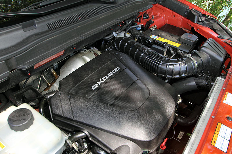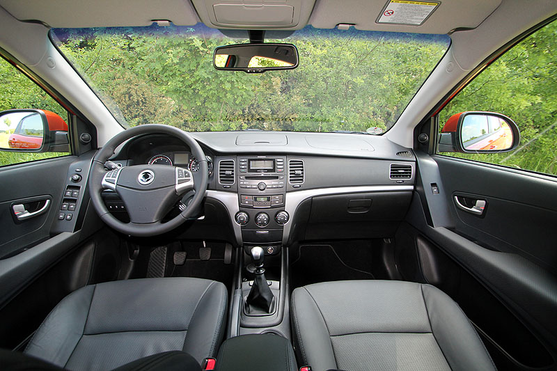 SsangYong Korando D20T AWD – Der Zwillingsdrache kehrt zurück / Seite 2Modern, übersichtlich und solide verarbeitet zeigt sich das Cockpit des Korando. Die vielen Ablagen, unter anderem in der vorderen Mittelarmlehne oder oben am Armaturenbrett, sind praktisch. Großzügig ist seine Serienausstattung: Neben den allfälligen elektrischen Helfern glänzt der Koreaner bereits in der 24.490 Euro teuren Allrad-Basisausstattung „Quartz“ mit Oberklasse-Features wie Sitzheizung, automatisch abblendendem Innenspiegel, Einparkhilfe hinten, Alarmanlage, Tempomat und einer Lenkrad-Fernbedienung für die Stereoanlage mit Bluetooth- und USB-Schnittstelle. Dass die Sicherheitsausstattung ebenso komplett ist, versteht sich da fast schon von selbst. Zunächst kommt als einzige Antriebsquelle im Korando ein zwei Liter großer Commonrail-Turbodiesel mit 129 kW/175 PS bei 4.000 U/min zum Einsatz. Das maximale Drehmoment von 360 Nm des Xdi200 genannten Triebwerks liegt zwischen 2.000 und 3.000 Touren an, und sein Verbrauch soll bei 6,4 Liter liegen, was CO-2-Emissionen von 169 Gramm pro Kilometer entspricht. Sobald sich die Nadel des Drehzahlmessers der Zweitausender-Markierung nähert, legt der Vierzylinder richtig los, bis er jenseits von 4.000 Touren wieder an Drehfreude verliert. Im schmalen Drehzahlband zwischen zwei- und viertausend Kurbelwellenumdrehungen macht das Triebwerk aus koreanischer Produktion richtig Spaß, darunter wirkt er schlapp, darüber wird er zäh.