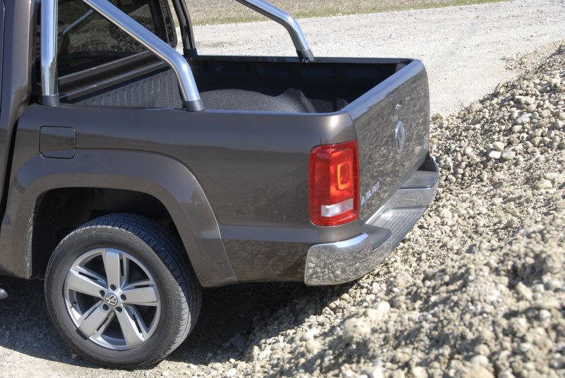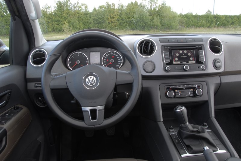VW Amarok Double Cab 2.0 BiTDI 4motion – Das soll ein Kleinlaster sein? / Seite 4Im Innenraum des Amarok-Doppelkabiners herrschen Platzverhältnisse und ein Ambiente auf dem Niveau eines ausgewachsenen SUV – zumindest in Verbindung mit dem Highline-Ausstattungspaket des Testwagens. Die Basisversion glänzt dagegen mit der Abwesenheit jeglicher Komfortausstattung. Ungeachtet dessen bieten alle Amarok-Versionen ihren Passagieren jede Menge Platz und ein ebenso großzügig bemessenes Gestühl. Nicht minder erfreulich ist die Vielzahl an wirklich großen und damit auch vernünftig nutzbaren Ablagen in den Türen, auf der Mittelkonsole und selbst oben auf dem Armaturenbrett. Liebe zum Detail und einen Sinn fürs Praktische hat Volkswagen Nutzfahrzeuge bei der Entwicklung des Zubehörprogrammes für den Amarok gezeigt – finden sich dort doch so genial einfache und praktische Optionen, wie eine 12-Volt-Steckdose auf der Oberseite des Armaturenbretts (beispielsweise zur Stromversorgung eines externen Navis, ohne Kabel-Wirrwarr) oder eine Ladeflächenbeleuchtung hinten am Dach des Fahrerhauses. Zur Verbesserung der Geländeeigenschaften hat VWN verschiedene Offroadpakete (inklusive 16-Zoll AT-Bereifung und Unterfahrschutz) sowie eine manuelle Differenzialsperre für die Hinterachse im Programm. Damit lassen sich die bereits in der Serienversion guten Geländegene des Amarok mit Permanent-Allrad (Bodenfreiheit 26,5 Zentimeter, Wattiefe 50 cm) weiter verbessern. Und für alle, die mehr Offroad-Power brauchen, gibt es ja schließlich auch noch den Heavy-Duty-Amarok mit zuschaltbarem Allradantrieb und Geländeuntersetzung zum gleichen Preis.