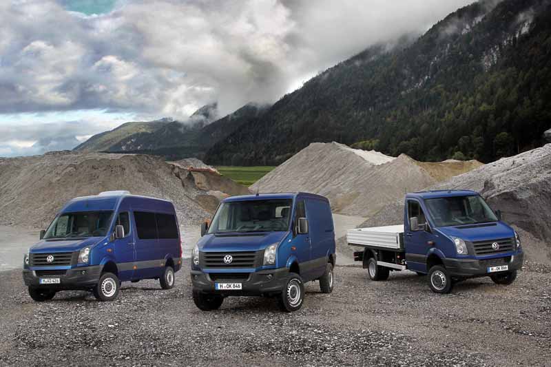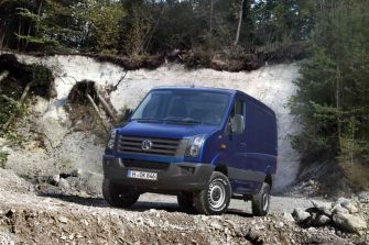 Fahrbericht: VW Crafter 35 Kastenwagen 2,0-l-BiTDI 4motion – Speditionsreise ins Gelände23.04.2012 Man will und muss ja auch als Spediteur ab und zu mal weiter kommen. Nicht nur über die Bordsteinkante. Da gibt's vielleicht eine dringende Lieferung zur hochgelegenen Gappenfeld-Alm oder ins Okavango-Delta. Für einen solchen Fall sollte man gerüstet sein. Kann man nun aber auch dank VW Nutzfahrzeuge: Die Hannoveraner bieten ab sofort ihren variantenreichen Großtransporter Crafter als Allradversion an. Kastenwagen, Kombi, Fahrgestell oder Pritsche mit Einzel- und Doppelkabine, kurzer, mittlerer oder langer Radstand sowie Normal, Hoch- oder Superhochdach und dann noch ein Modell mit Laderaum maximierendem Extra-Überhang: Der VW Crafter ist in diverse(ste)n Ausführungen zu haben. Nicht zu vergessen die verschiedenen Leistungsvarianten des Zweiliter-Vierzylinder-Common-Rail-Dieselmotors. Da kann man dann schon leicht den Überblick in der Angebots-Palette verlieren. Und nun auch noch der Allradantrieb. Den es zu allem Überfluss für alle Karosserievarianten gibt, was zwar letztlich nicht wirklich Sinn macht, wie wir später noch sehen werden. Aber VWN will ja „das Angebot komplettieren.“ Gottlob müssen Sie sich als potenzieller Interessent zumindest nicht bei der Motorisierungswahl quälen. Denn für den Allrad-Crafter gibt's nur einen: Den BiTurbo mit 120 kW (163 PS) und 6-Gang-Schaltgetriebe. Der Allrad-Crafter heißt natürlich familiengerecht „4motion“, was ein bisserl irreführend ist, weil man als VW-Stammkunde automatisch den permanenten Vierradantrieb via Haldex-Kupplung assoziiert. Sollten Sie das jetzt ebenfalls tun: Streichen Sie den Gedanken wieder. Dieser „4motion“ ist zwar ebenfalls ein permanenter Allradler, aber das System kommt im Falle des Crafter von 4x4-Spezialist Achleitner und arbeitet ganz klassisch mit einem Mittendifferenzial, das die Kraft konventionell im Verhältnis 50:50 auf die beiden Achsen verteilt. Dass es die Österreicher für den speditiven Geländeausflug nicht dabei belassen und VW da sowieso etwas mehr Technik ins Lastenheft schrieb, ist eh klar. Also lässt sich in der Achleitner-Antriebssystem-Konfiguration – wir gehen das in der logischen Folge durch – die Untersetzung für das 6-Gang-Schaltgetriebe einlegen, das Mittendifferenzial sperren, anschließend das der Hinterachse sowie schlussendlich (aber nur gegen Aufpreis) noch das vordere Ausgleichsgetriebe.