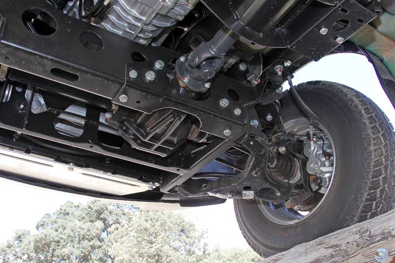Aber aufpassen: Hat man den Motor einmal abgewürgt, sind alle Differenziale wieder entsperrt und es ist ein erneuter Druck auf die Aktivierungstasten fällig. So, nun sind wir sind aber noch nicht fertig mit dem Achleitner-Umbau, der im Crafter 4motion steckt: Der umfasst nämlich noch verstärkte Federn und härtere Dämpfer mit progressiver Kennung sowie stärkere Stabilisatoren für die vordere Einzelradaufhängung sowie die hintere Starrachse. Außerdem eine Höherlegung um 100 mm gegenüber der Serie, womit wir bei 30 cm Bodenfreiheit und eine Wattiefe von 600 mm sind. Die weiteren Eckdaten zur Komplettierung: 25° Rampenwinkel und 28° Grad Böschungswinkel hinten beim kurzen Radstand-Modell.
