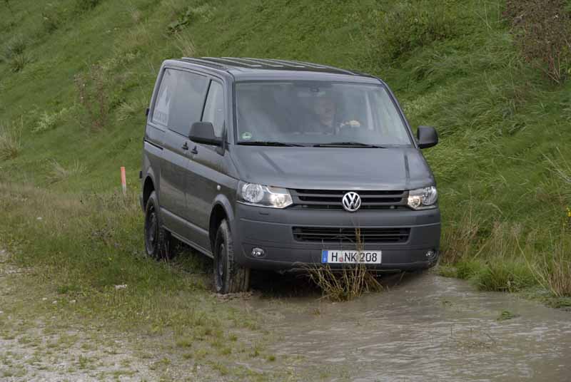 VW T5 Rockton Expedition 2.0 TDI – Der Bulli fürs Grobe25.01.2012 Ein T5 mit Allradantrieb ohne Ausstattung? Puristisch also. Oder besser noch: so pur wie Mineralwasser ohne Kohlensäure. Gibt's das? Einen „Bulli fürs Grobe“, wenn man so will. Und man will, wenn man erstens den T5 4motion als geländegängige Variante mag und zweitens genau einen solchen als personen-güter-transport-geeigneten Kastenwagen ohne Trennwand. Gibt es: Damit man sich einen solchen Ideal-Bulli nicht selbst umständlich aus der Ausstattungs- und Preisliste konfigurieren muss, hat Volkswagen Nutzfahrzeuge den „T5 Rockton Expedition“ auf die 16 Zoll-Räder gestellt. Kostet zwar von Haus (also „nackt“) schon mal locker über 40.000 Euro. Aber wir sagen trotzdem „Danke!“ für das Angebot. Der „T5 Rockton Expedition“ verspricht Puristen pures Vergnügen. Denn er ist mit nichts ausgestattet, was man nicht braucht. Sprich: Nehmen Sie sich einfach mal die VW üblich-üppige Liste der Serien- und Zusatzfeatures für einen T5 4motion zur Hand und streichen alles raus, was Sie als reiner Geländeausflügler nicht haben wollen. Und ergänzen Sie Ihren nahezu „nackten“ Wunsch-Transporter dann um so appetitliche Zutaten wie ein Seikel-Fahrwerk mit verstärkter Federung und Dämpfung (genau: das für die 3,2 Tonnen-Variante) sowie 30 Millimeter Höherlegung, traktionsstarke BFGoodrich LongTrail A/T Reifen auf robusten 16 Zoll-Stahlfelgen, eine Differenzialsperre an der Hinterachse oder einen Staub siebenden Luftfilter. Der Clou aber ist die Getriebebox: Erinnern Sie sich noch an das 4+G-Menü im T3 16-Zöller syncro selig? Das zum Geländekrabbeln? So etwas in der Art haben die Zahnrad-Paarer in Hannover nun auch für ihren Rockton kreiert: Ein 6-Gang-Schaltgetriebe mit verkürzten Übersetzungen in den drei unteren Gängen (I: 3,92; II: 2.05; III: 1,70), damit der 3,2-Tonner ordentlich dort klettern kann, wo er klettern soll. Und weil dazu kurzgängige Getriebestufen alleine nicht reichen, haben die Ingenieure die Mechanik um eine Achssperre an der Hinterachse ergänzt sowie die Karosse des Rockton via der Höherlegung mit einer ordentlichen Bodenfreiheit von 260 Millimetern sowie formidablen Böschungswinkeln – vorne 32, hinten 29 Grad – ausgestattet. Wobei der hintere jedoch arg eingeschränkt wird, wenn man den Rockton mit einer starren Anhängekupplung als zugfähiges Fahrzeug ausrüstet.