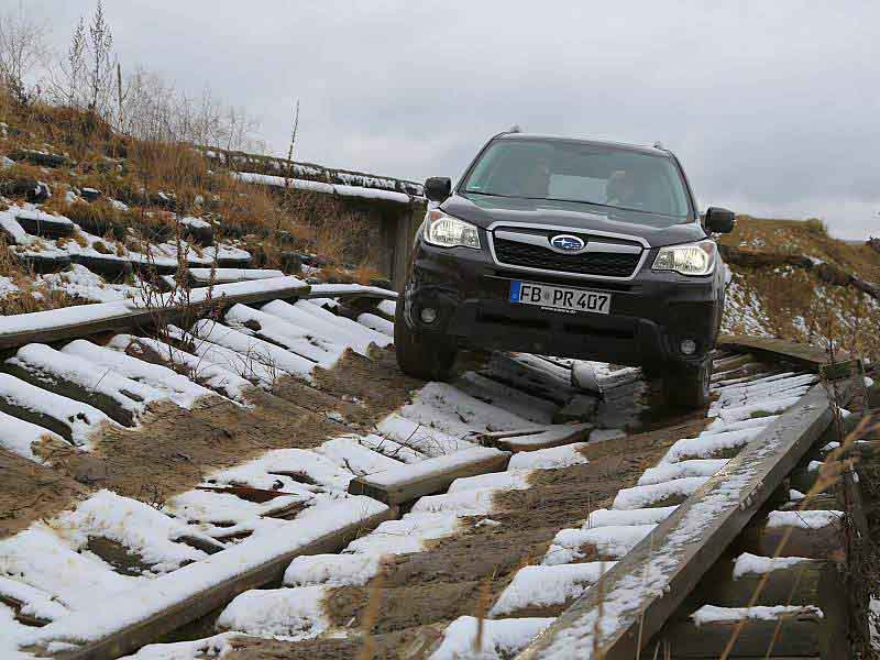 Subaru Forester IV: Neues Kraftfutter für das Zugpferd / Seite 4Die Räder sind übrigens größer als beim Vorgänger: 17 Zoll beim 2.0-Benziner und Diesel sowie 18 Zoll beim Turbo-Benziner erhöhen die Bodenfreiheit auf nunmehr 220 Millimeter. So sind wir im Matschparcours des ADAC-Fahrsicherheitszentrums Lüneburg mit dem Forester 2.0X Lineartronic recht leichtfüßig über Kamelbuckel und Balkenbrücken, durch Verschränkungspassagen und Wasserlöcher, Steigungen hinauf und Gefälle hinunter sowie Hänge in Schräglage gefahren. Und das ganz ohne Hängen und Würgen. Einen artigen Charakter offenbarte das modifizierte, straff abgestimmte Fahrwerk (beim Diesel und Standardbenziner serienmäßig mit mechanischer Niveauregulierung an der Hinterachse) im Anschluss auf der kurvig-hügeligen Asphaltbahn des Sicherheitszentrums: Ein gutmütig-untersteuernder Charakter, der sich in zügig angegangenen Biegungen rasch über die schiebenden Vorderräder wieder einbremst. Traktionskontrolle und Stabilisierungsprogramm leisten ihren erwarteten Beitrag dazu. Und da wir gerade bei den elektronischen Sicherheitsfeatures sind, wollen wir solche Feinheiten wie das Gespann-Stabiliserungssystem nicht unerwähnt lassen: Diese Fahrdynamikregelung dürfte laut Subaru für immerhin 60 Prozent aller Forester-Käufer interessant sein. Denn so hoch ist der Anteil der georderten Anhängekupplung bei diesem kompakten SUV, immerhin darf es 2.000 Kilo an den Haken nehmen. Ein Argument, dank dem der Forester auch 2013 wieder zum Zugpferd des japanischen Herstellers auf dem deutschen Markt werden könnte.