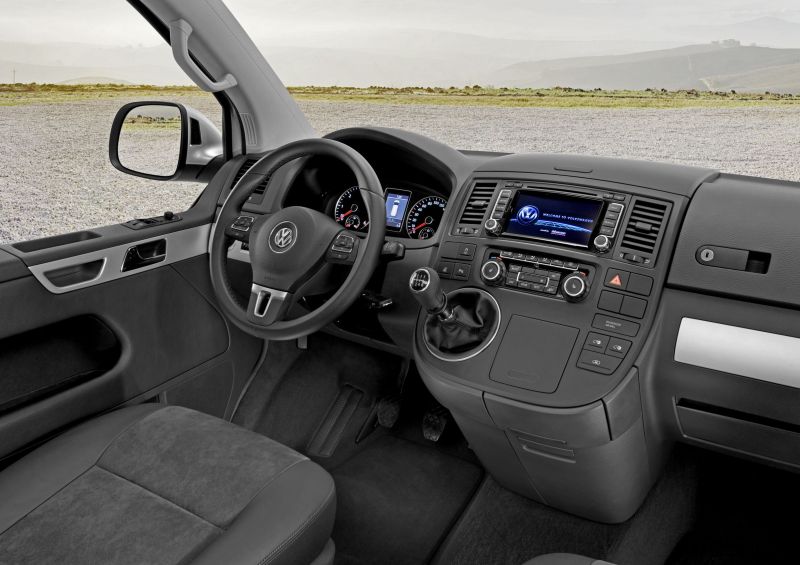 spektakulär ausgefallen, aber unter dem Blech hat sich einiges getan. Beispiel Motoren: Die neuen und sparsameren Turbodiesel (TDI) verfügen nun über eine Common-Rail-Einspritzung. Darüber hinaus kommt weltweit erstmalig optional in dieser Klasse ein 7-Gang-Doppelkupplungsgetriebe (DSG) zum Einsatz. Ebenfalls als Option steht zudem ein neuer, elektronisch gesteuerter Allradantrieb (4Motion mit Haldex-Kupplung der 4. Generation) zur Verfügung, der auch jenseits befestigter Straßen das Durchkommen ermöglichen soll. Ein Novum ist dabei die Tatsache, dass Volkswagen Nutzfahrzeuge zum Jahreswechsel auch eine 4Motion-Version in Verbindung mit DSG im Programm haben wird. Optisch gibt sich die neue T5-Generation unter anderem an ihrer