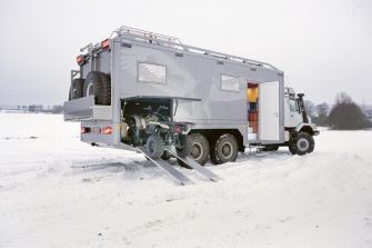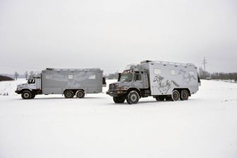 Zwei Freunde, zwei Unternehmen, ein Hobby: Der eine braut Bier nach deutschem Rezept, der andere ist an ertragreichen Kohle- und Kupferminen beteiligt – und beide sind leidenschafliche Jäger, die es oft zu mehrtägigen Ausflügen ins Altai-Gebirge zieht. Für ihre Jagdgesellschaften benötigten sie nun jeweils ein extrem geländegängiges Fahrzeug mit komfortablem Huckepack-Appartment. Und entschieden sich gemeinsam für den Mercedes-Benz Zetros 2733 A mit Allradantrieb auf drei Achsen.