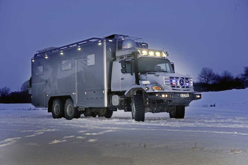 Mercedes-Benz hat zwei Zetros 2733 A 6x6 als exklusive Jagd- und Expeditionsmobile in die mongolische Hauptstadt Ulan-Bataar verkauft. Die beiden Allrad-Lkw wurden im Auftrag von zwei befreundeten Unternehmern mit luxuriösen Wohnkabinen ausgestattet.