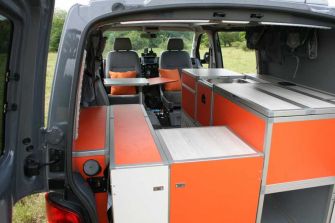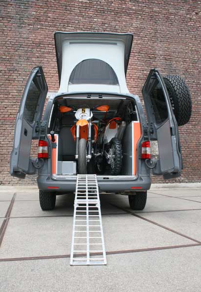 Premiere auf dem Caravan Salon 2011 in Düsseldorf: Terra Camper präsentiert Fernreise-Mobil Terock auf VW T5 Rockton / Seite 2Je nach Reisegewohnheit und Platzanspruch stehen für den Terock verschiedene Dachvarianten zur Wahl: Neben dem serienmäßigen Stahlblechdach sind dies ein aufstellbares GfK-Schlafdach, ein festes Hochdach sowie das neu entwickelte, aufstellbare Terra Camper GfK-/Aluminium-Schlafdach mit einer großen Dachluke. Es bietet eine Liegefläche von 120 x 200 cm. Klappt man den Einzelsitz im Innenraum um, steht eine zusätzliche Liegefläche von 90 x 200 cm zur Verfügung. Tagsüber kann das Dachbett platzsparend an die hintere Seite des Schlafdaches geklappt und mit Gurten gesichert werden. In Verbindung mit der Panorama-Dachluke ergibt sich im gesamten Wohnbereich volle Stehhöhe. Der Stoffbalg lässt sich mittels Reissverschluss öffnen, die Dachluke kann komplett nach hinten umgelegt werden und erlaubt damit einen Ausblick auf den nächtlichen Himmel. Auf dem speziellen Aluminium-Schienenboden lassen sich Einzelsitze mit integrierten 3-Punkt Gurten möglich. Im Gegensatz zu (schweren) Sitzbänken können die Einzelsitze ohne Schwierigkeiten von einer Person montiert und demontiert werden. Der Terock kann mit bis zu sechs Sitzplätzen ausgestattet werden. In den Seitenteilen, welche die hinteren Radkästen des VW T5 Rockton umschliessen, haben die Hagener die gesamte Technik ihres Ausbaus integriert. Je nach Kundenwunsch lassen sich darin ein 40 oder 80 Liter-Frischwassertank, eine Druckpumpe, ein Zusatzheizer, eine mit Kraftstoff betriebene Standheizung, ein Warmwasser-Boiler, ein 80 Ah Bordakku, ein Ladegerät und ein Inverter installieren.