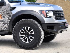 Ford F-150 SVT Raptor von Geiger – Power-Pickup mit 600 PS24.07.2012 Von stolzen 411 auf brachiale 600 PS (441 kW) steigert der US-Cars-Spezialist Karl Geiger aus München die Leistung des Power-Pickups Ford F-150 SVT Raptor. Ein Kompressor bringt die erhebliche Mehrleistung, außerdem einen noch fülligeren Drehmomentverlauf, und beim Spritsparen soll die Aufladung auch noch helfen. Schon mit seinen serienmäßigen 411 PS ist der Ford F-150 SVT Raptor als Topvariante des beliebtesten Pickups der USA „best in class.“ US-Car-Tuner Karl Geiger setzt dem noch eins drauf und steigert mit einem Kompressor die Leistung auf 600 PS (441 kW). Die sorgen für beeindruckende Fahrleistungen, selbst wenn man die mögliche Anhängelast voll ausnutzt: Der Geiger-Raptor darf 3.450 kg schleppen, was für die als Zugfahrzeuge beliebten US-Pickups besonders wichtig ist. Karl Geiger zum Spritspar-Potenzial des Raptor-Tunings: „Der Kompressor sorgt schon bei niedrigen Drehzahlen für jede Menge Drehmoment, und bei konstant 160 km/h haben wir eine Benzinersparnis von zwei bis drei Litern auf 100 km“. Der Geiger Ford F-150 SVT Raptor 4X4 Super Cab Styleside ist ab 74.900 Euro zu haben, inklusive einer reichhaltigen Serienausstattung unter anderem mit Sechsstufen-Automatik, Leder, Differenzialsperre, 17-Zoll-Alufelgen mit 35-Zoll-Geländereifen von BF Goodrich, Sony-Soundsystem, Luxury-Package und Zweizonen-Klimaanlage. Den Kompressor-Umbau des Ford F-150 SVT Raptor bietet Geigercars auch für die beiden Versionen Super Cab und Super Crew Cab an.