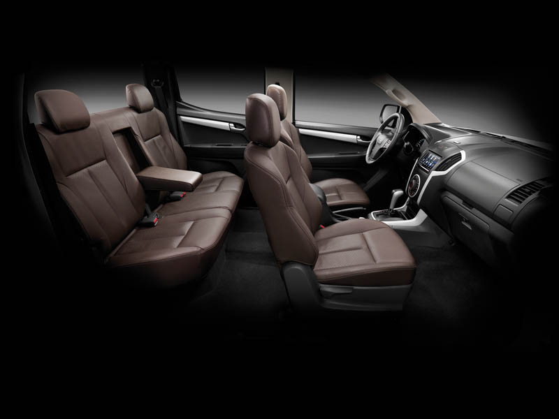 Für Sicherheit sorgen eine verstärkte Fahrgastzelle, Tagfahrlicht, ABS mit ESP und TCS (Traktionskontrolle). Insgesamt sechs Airbags, für Fahrer und Beifahrer sowie Seiten- und Kopfairbags gehören ebenso zur Standardausstattung. Zusätzlich zu den Ausstattungsversionen Basic und Custom gibt es den D-Max zukünftig auch als Premium-Version, dann besticht der variable Innenraum mit Ausstattungselementen wie beispielsweise elektrisch verstellbaren Ledersitzen mit Sitzheizung vorn oder CD-Radio mit Bluetooth und USB-Anschluss, Tempomat und Klimaautomatik.