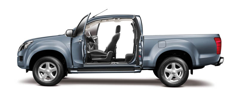Auch die Neuauflage des D-Max wird es in den drei Karosserieversionen Single Cab, Space Cab oder Double Cab geben. Neu ist beim Eineinhalb-Kabiner die hinten angeschlagene Türe für die zweite Sitzreihe und der damit verbundene Verzicht auf die B-Säule.